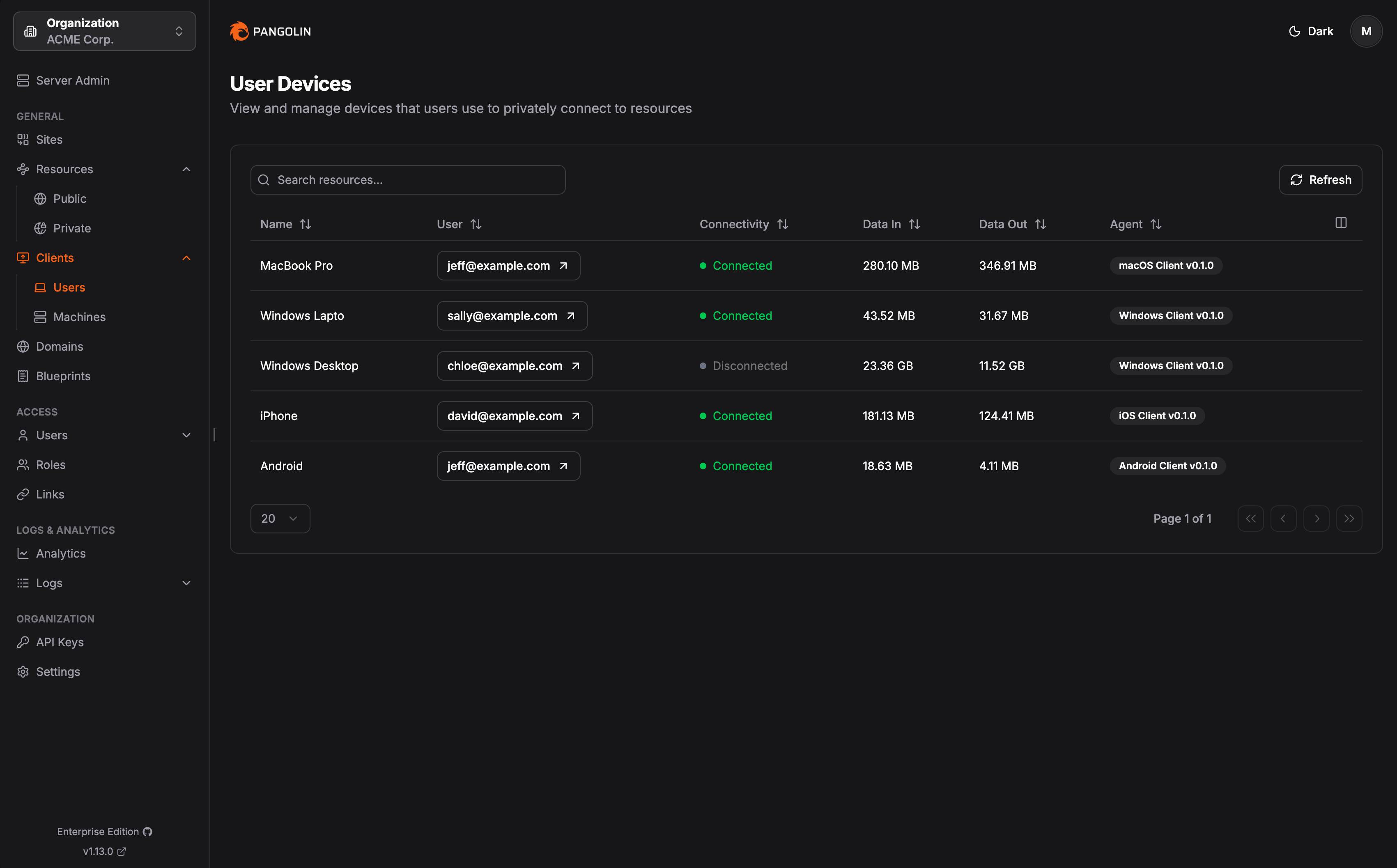 Pangolin is an open-source, identity-based remote access platform built on WireGuard that enables secure, seamless connectivity to private and public resources. Pangolin combines reverse proxy and VPN capabilities into one platform, providing browser-based access to web applications and client-based access to any private resources, all with zero-trust security and granular access control.